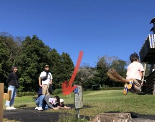 「どこから飛ぶのか」がもう少しわかりやすくなるかな? っとガムテープで「➡」を作って