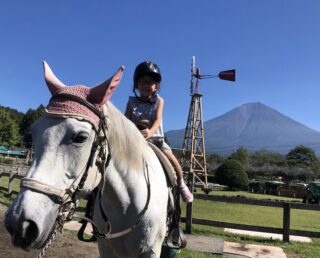 乗馬姿を撮るならば「馬」「人」「風車」「富士山」が全部入ったら100点満点💯