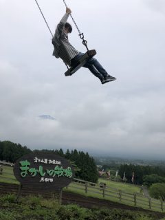 放牧場上にある、ゴロ寝できる「クラウドネット」も