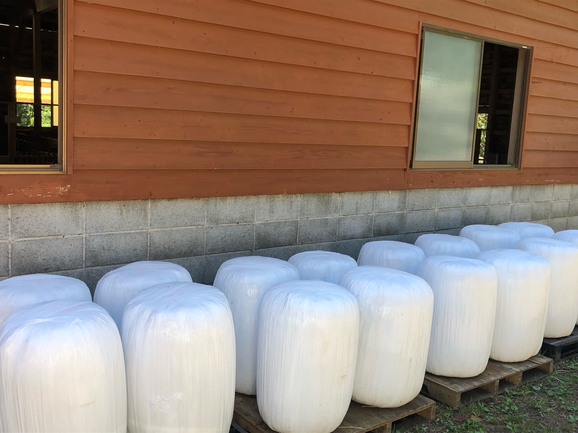 羊の家の白い塊は「サイレージ」。