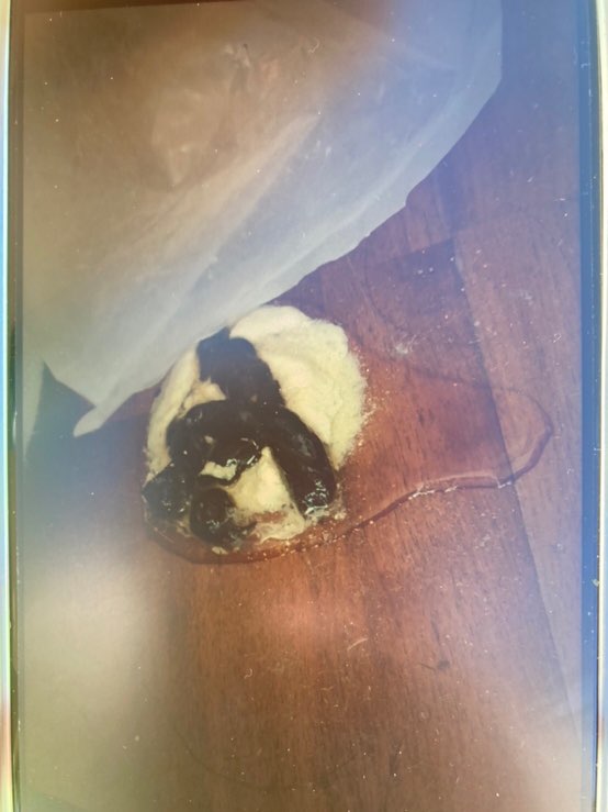 直径5センチ以上ある、「透明な液体」と「尿酸(白いの)」と「黒い糞」。