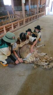 毛刈りの本番は春(3月~GW)ですが、今の時期は、出産準備としてお母さん羊の「そうじ刈り」の時期。