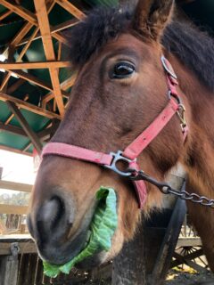 アイヒメちゃんに、レストランから出たキャベツの葉っぱをあげてみる。