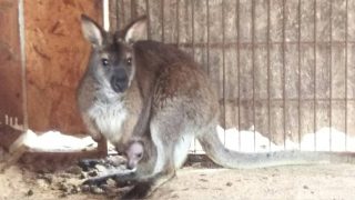 なんと。 ベネットワラビーの赤ちゃんが誕生しておりまして。
