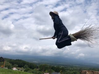 通りがかりに「そらとぶほうき」の撮り方実演をする📸