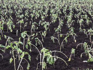 みんなで植えたひまわりの苗がググっと持ち上がってきたぁ!
