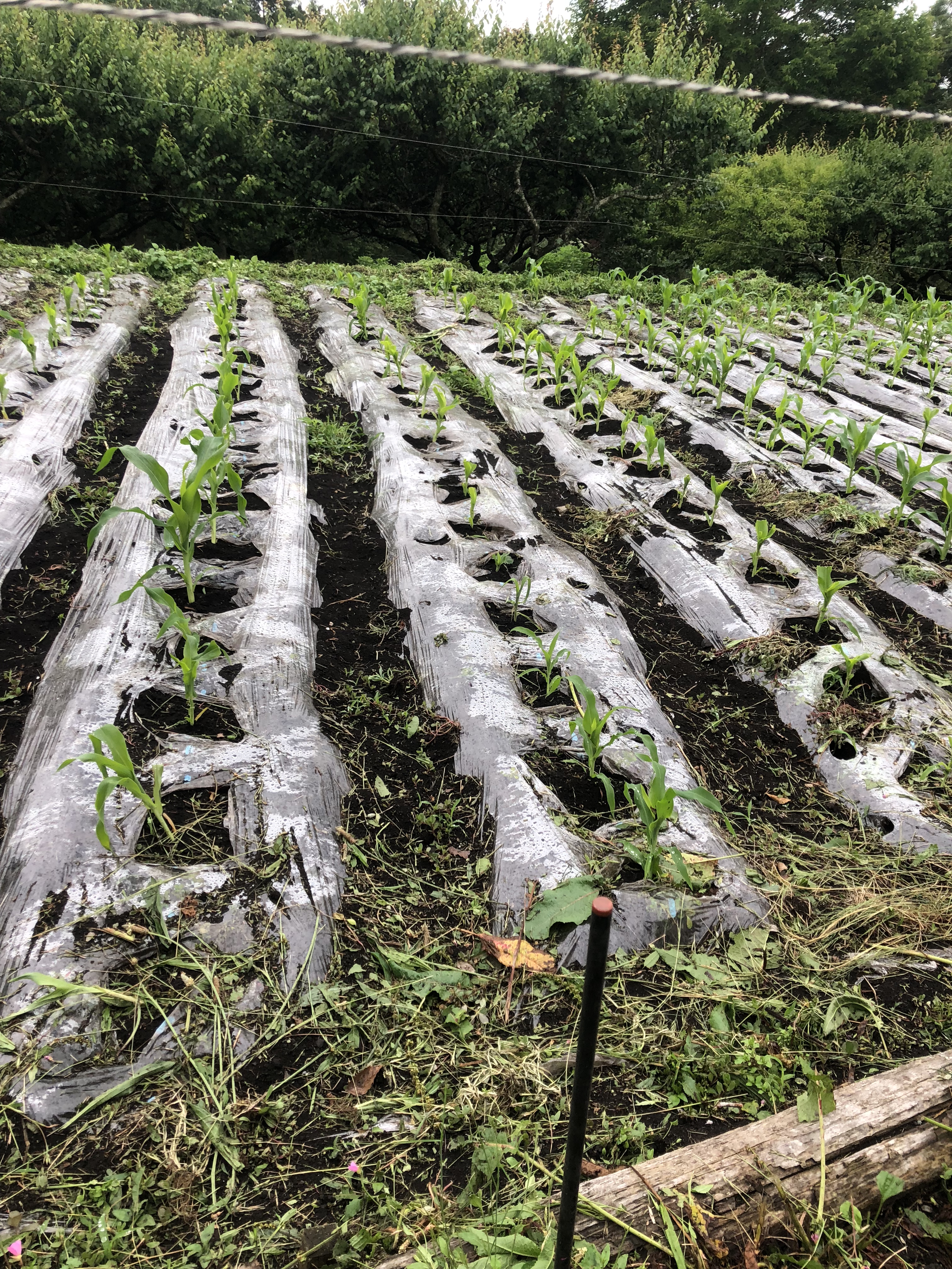 梅園横の山の上のトウモロコシ畑が、シカに足跡だらけにされ、芽も何十本も食べられた💦