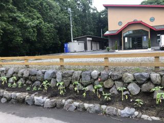 植えて1週間の、工場(factory)前の花壇の花壇。