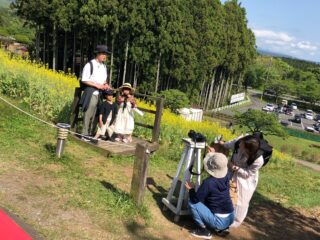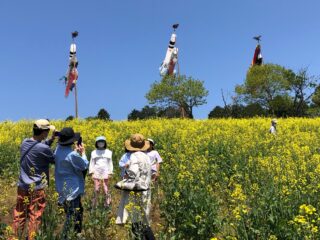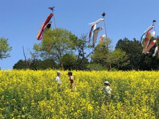 家族・菜の花。赤い羊の家・富士山・青空 で