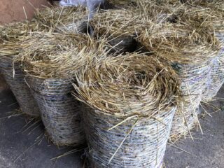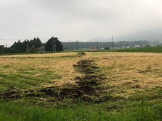 昨日は雨が降る前にムギ畑へ 茎を回収に行く。