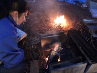 「バーナーでたき火をつけるのに5分以上かかる事があるので、(うちわで)仰がないでも1分で火がつく【たき火のつけ方】を特訓してほしい」と依頼が来たので、昨日、特訓を実施。