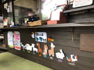 メイお姉さんが、入場口に「中にいる動物たち」をフェルトで可愛く表現♪
