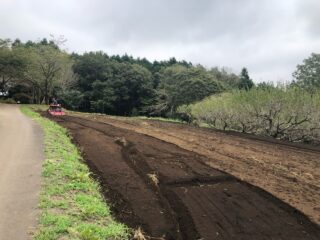 ヨシダお兄さんは、2日間で畑が空っぽになった「落花生1期目の畑」を耕していました。