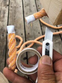 ロープを切る際の方法の1つに、「テープを固めにギュッと貼り付け、そこを切る」という方法があります。