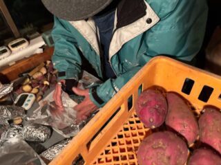 遊具のスズキさん、今だけ「まかいの牧場で採れた、ヨシダお兄さんのサツマイモ」を焼き芋にする作業を頑張り中。