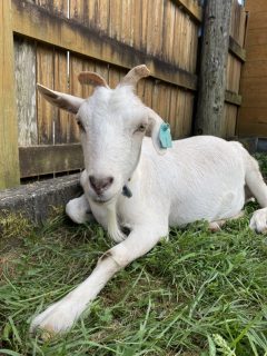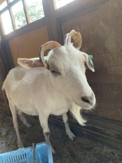 仔山羊の時の除角が甘かったせいで変な風に曲がった角になっていましたが、