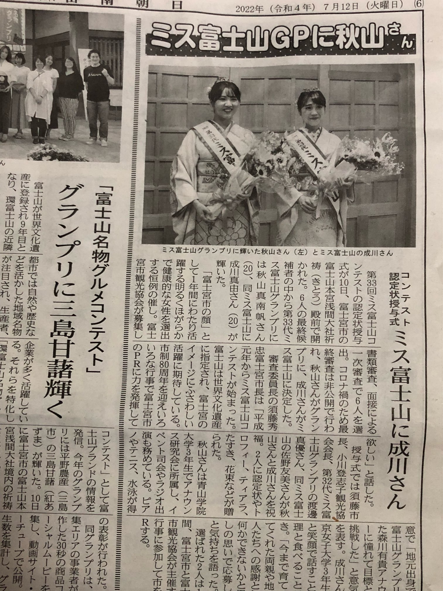 そのアキヤマさんの娘さんが・・・・この度、「ミス富士山」の頂点(グランプリ)に選ばれたのです!!