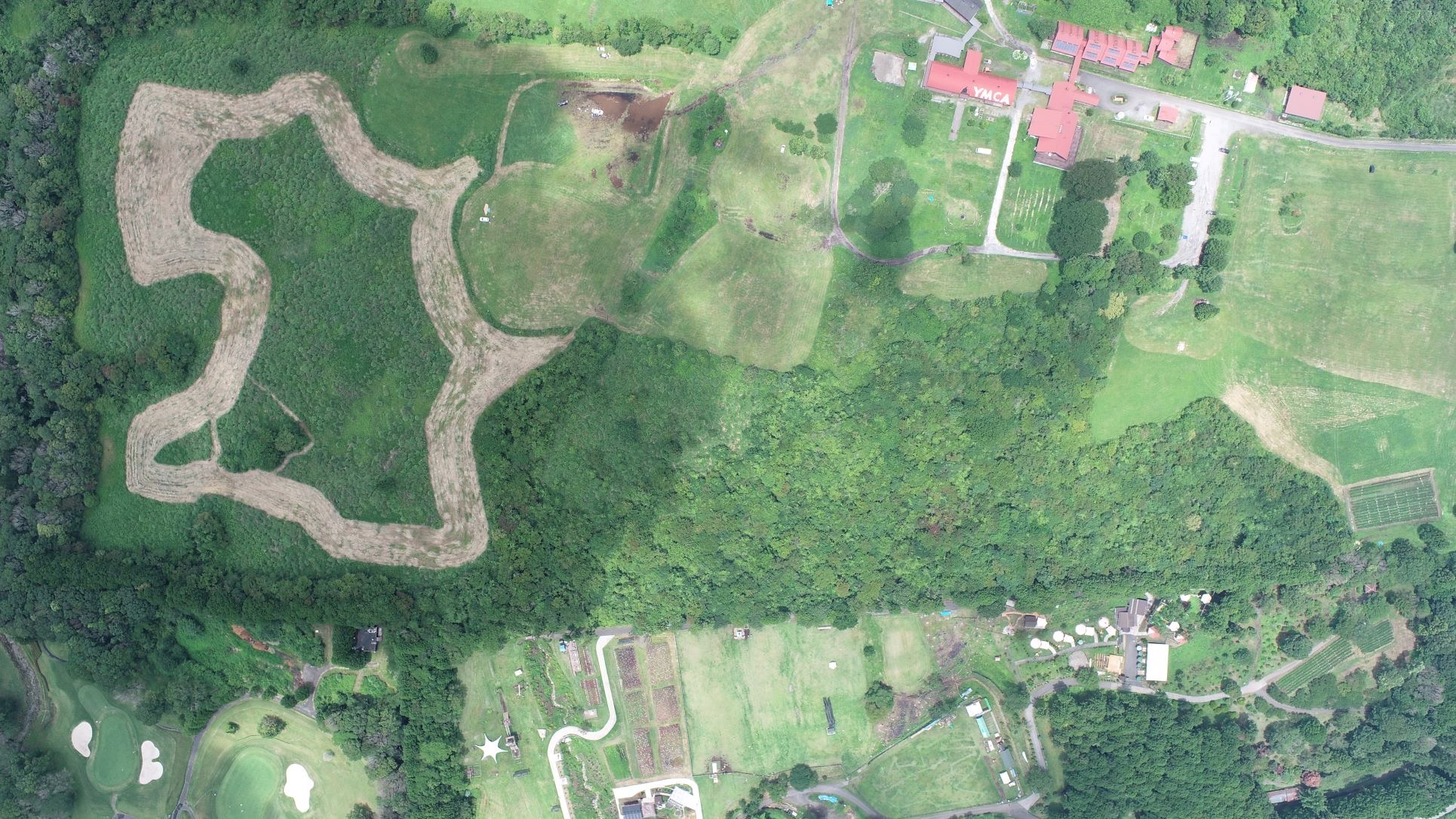 3メートル近いススキを刈りまくっておりますが、その上空からの写真を馬飼野社長が撮影してくれました📸