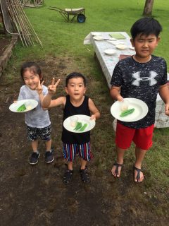 畑でもいで、たき火の大鍋ですぐゆで すぐたべ!!