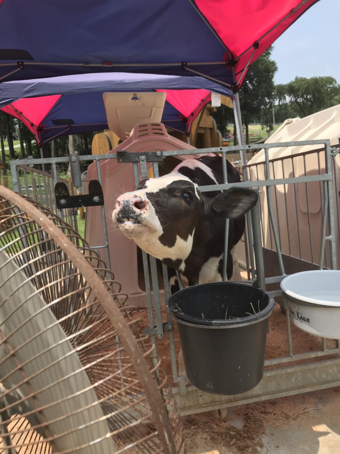 仔牛も「扇風機が涼し~い」と、こんな顔w