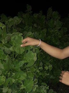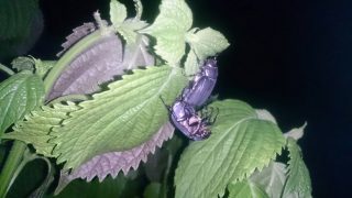 先日、アベお姉さんが夜、シソの葉を収穫しながら発見したヒメコガネ。