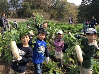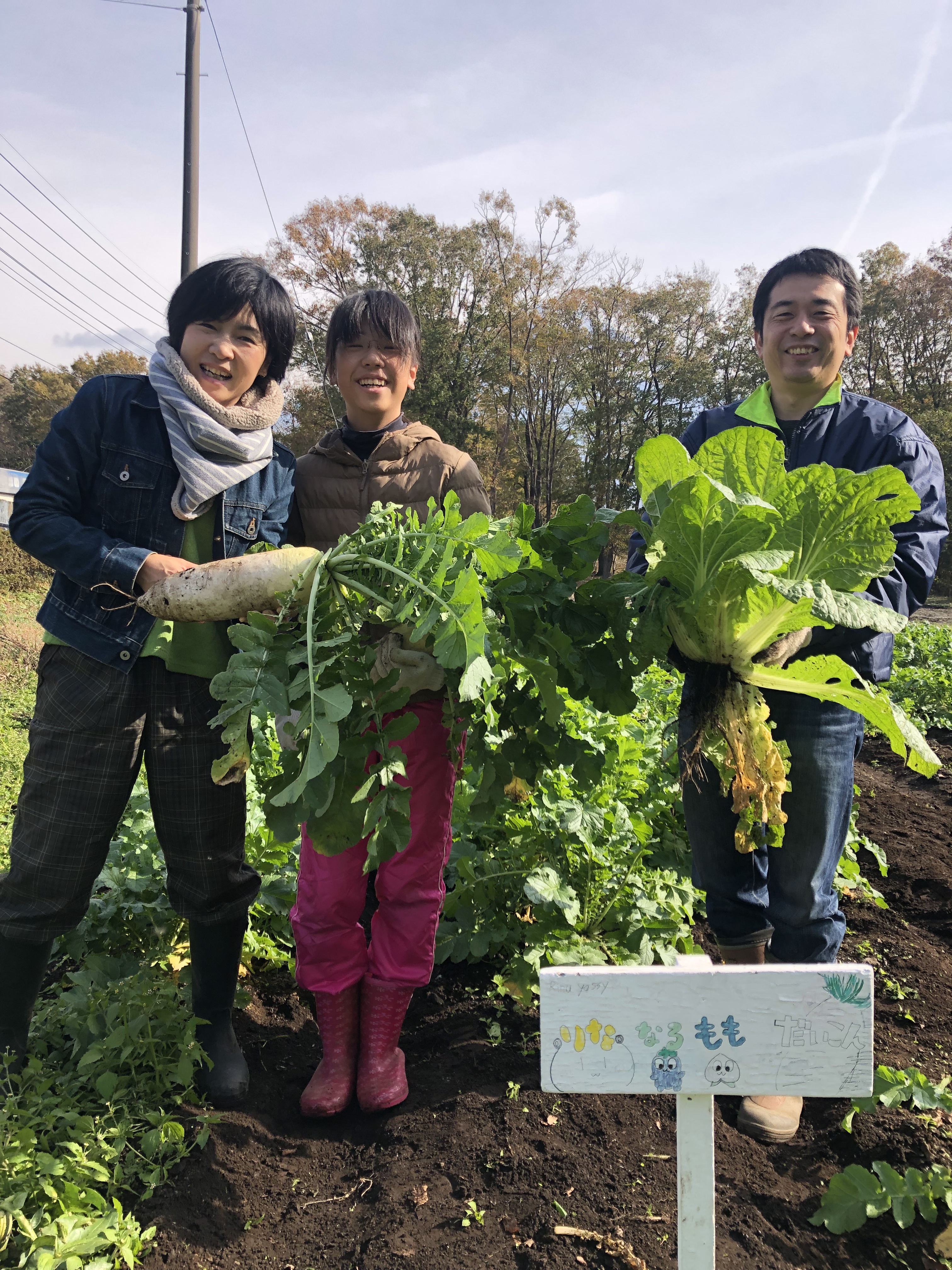 まきば農園の大根白菜畑を持っているリナちゃんたち、昨日は収穫&お料理!!