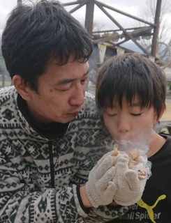 昨日はなんだか大人気だった「たき火で焼き芋を作ってみよう!」の体験。