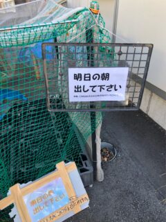 回収時にこの「(今日の回収は終わったので)明日の朝出してください」という看板をかける。