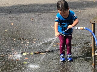 スプリンクラーの水遊びタイムは11時、13時、15時。