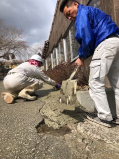 そんな割れ部分に余剰コンクリートを入れて「ついで」直し。