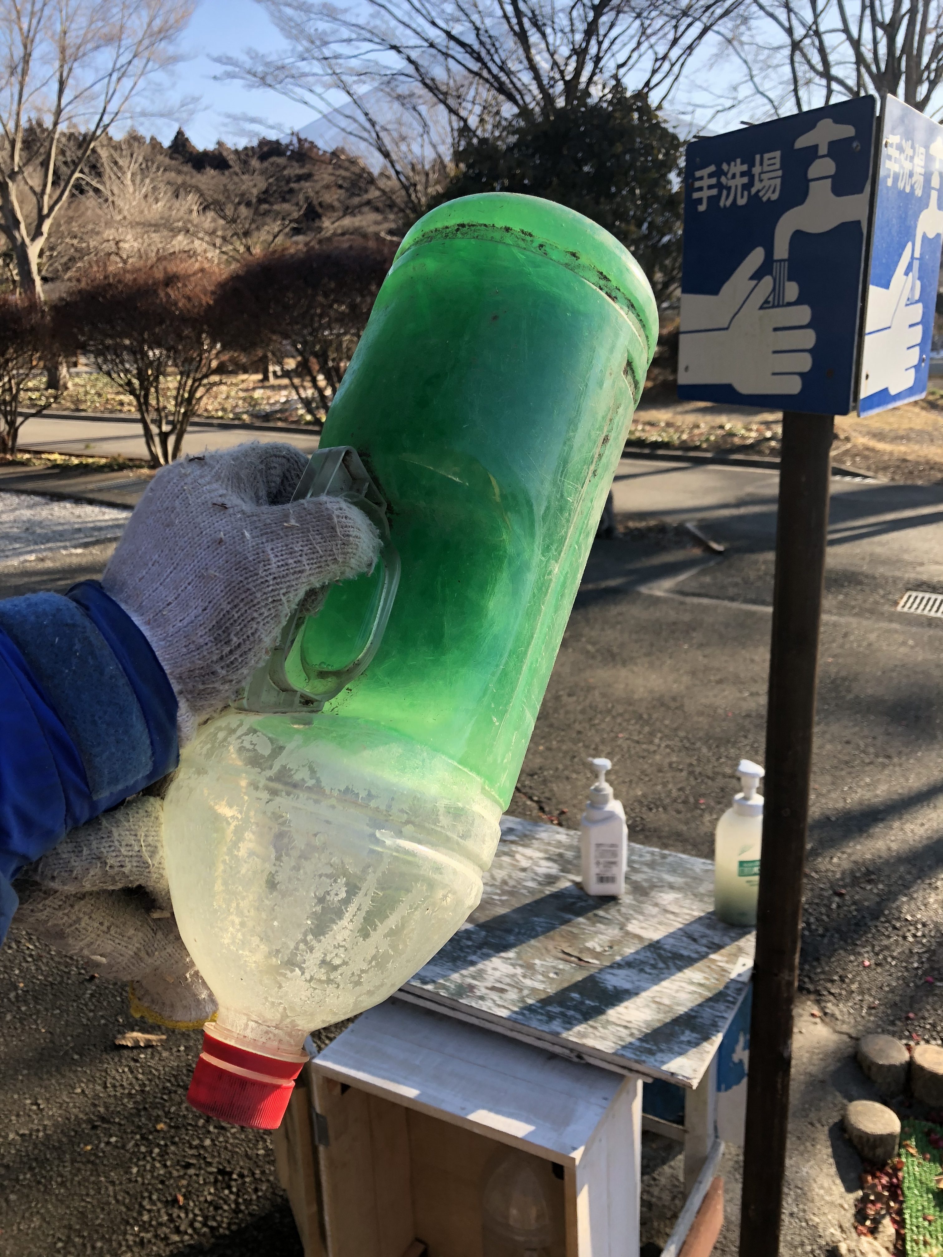 寒い朝。消毒液の攻撃力がハネ上がっておりました。