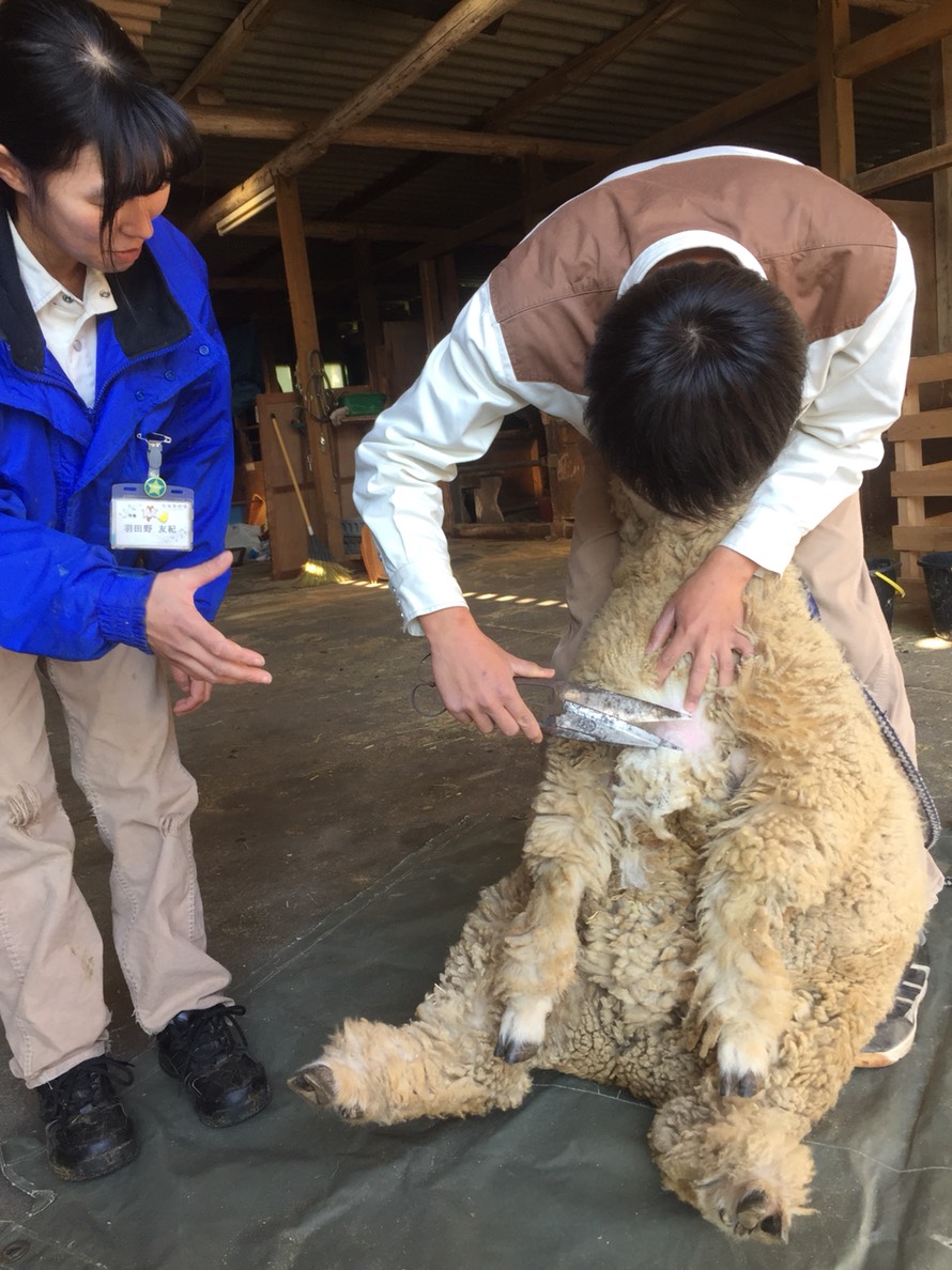現在牧場で毛を刈れるのは、ハタノお姉さんが1番で、ミツイさん、シンカイさん。そして、マツダお姉さんも技術をあげるべく頑張っております!(もう刈れる)