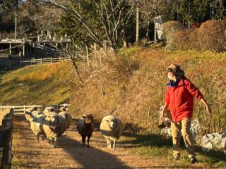 六甲山牧場のマエダお兄さんが ベルで羊を集めており、「ステキだ!」と感心して
