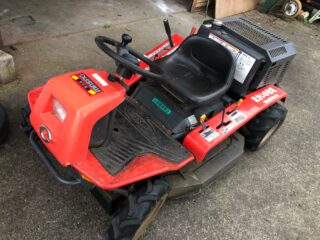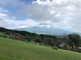 草刈りが追いついておらず、乗用式草刈り機で場内の芝を刈る営繕さんを手伝う。