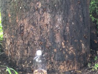 場内のナラの木は全て、カシノナガキクイムシの影響で樹液を流し続けています。