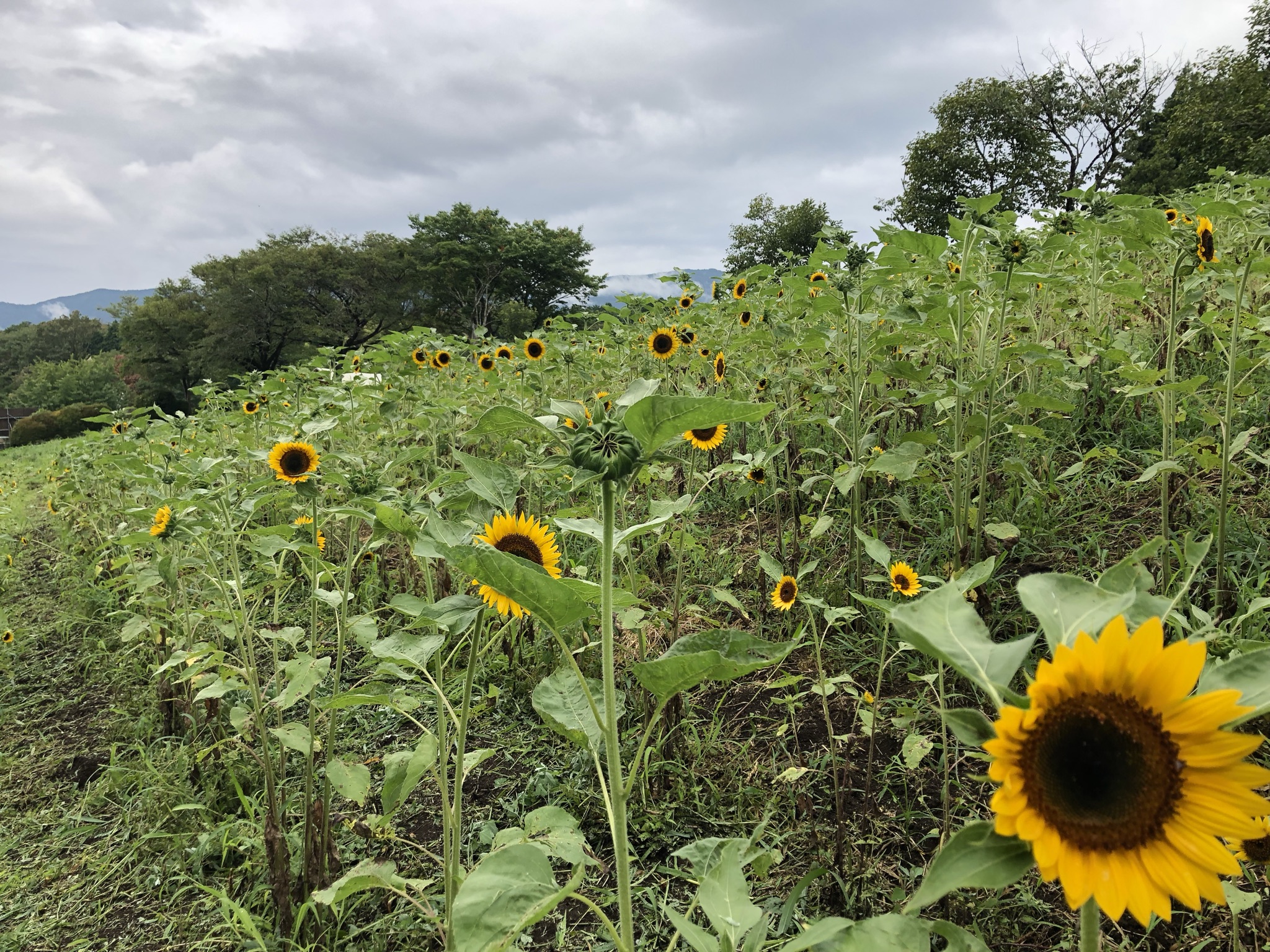 4月に種を蒔いたヒマワリがボチボチ咲き始めました。