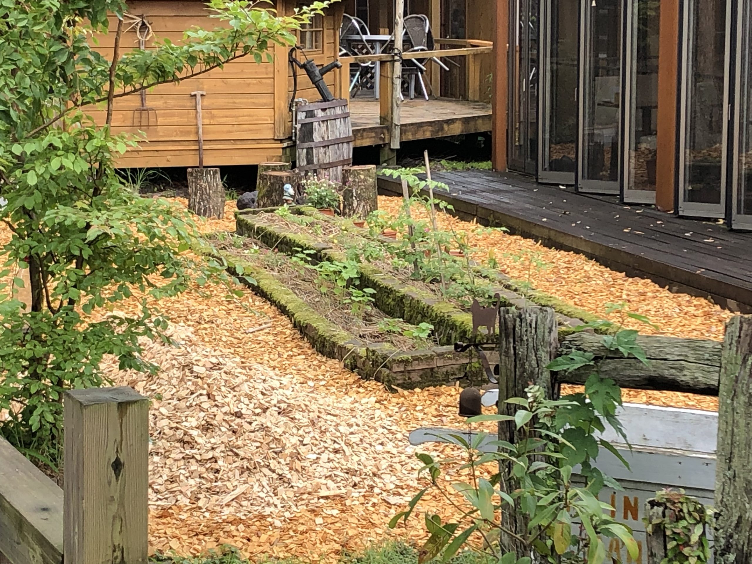 「もう1杯ウッドチップ欲しいです~」と要望があったので重機でお届け。