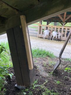 ちょっと破損があったので、拾ってきた木で柱をチョチョっと。