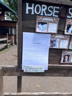 皆さまにお別れの気持ちを伝えていただけるよう、牧場内「馬の家」に6月29日(日)まで献花台を設置いたしました。ご来場の際に、ぜひお立ち寄りいただければ幸いです。
