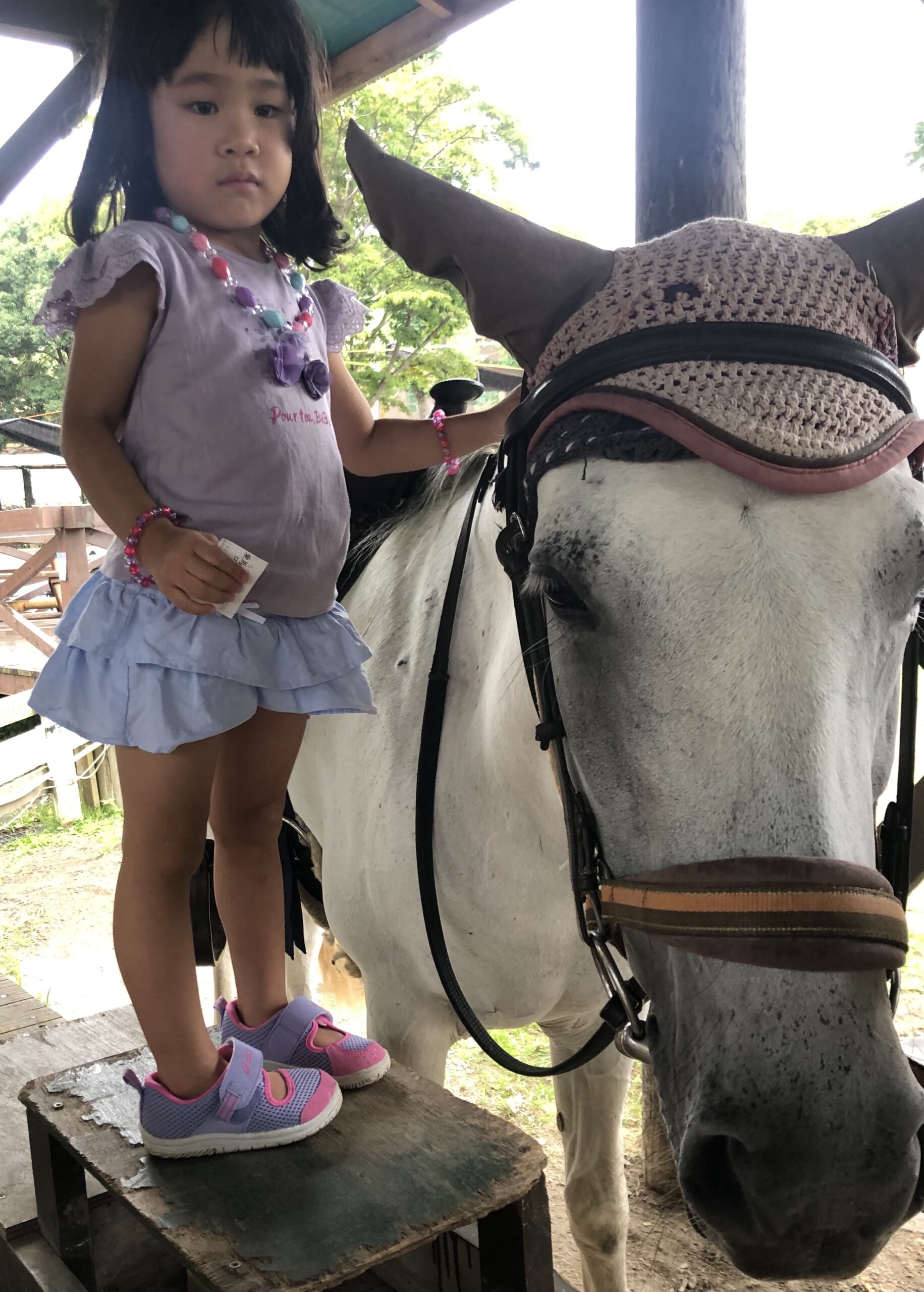 いったん乗馬を中止しして、待っている間に馬さんとの「超ふれあいタイム」!