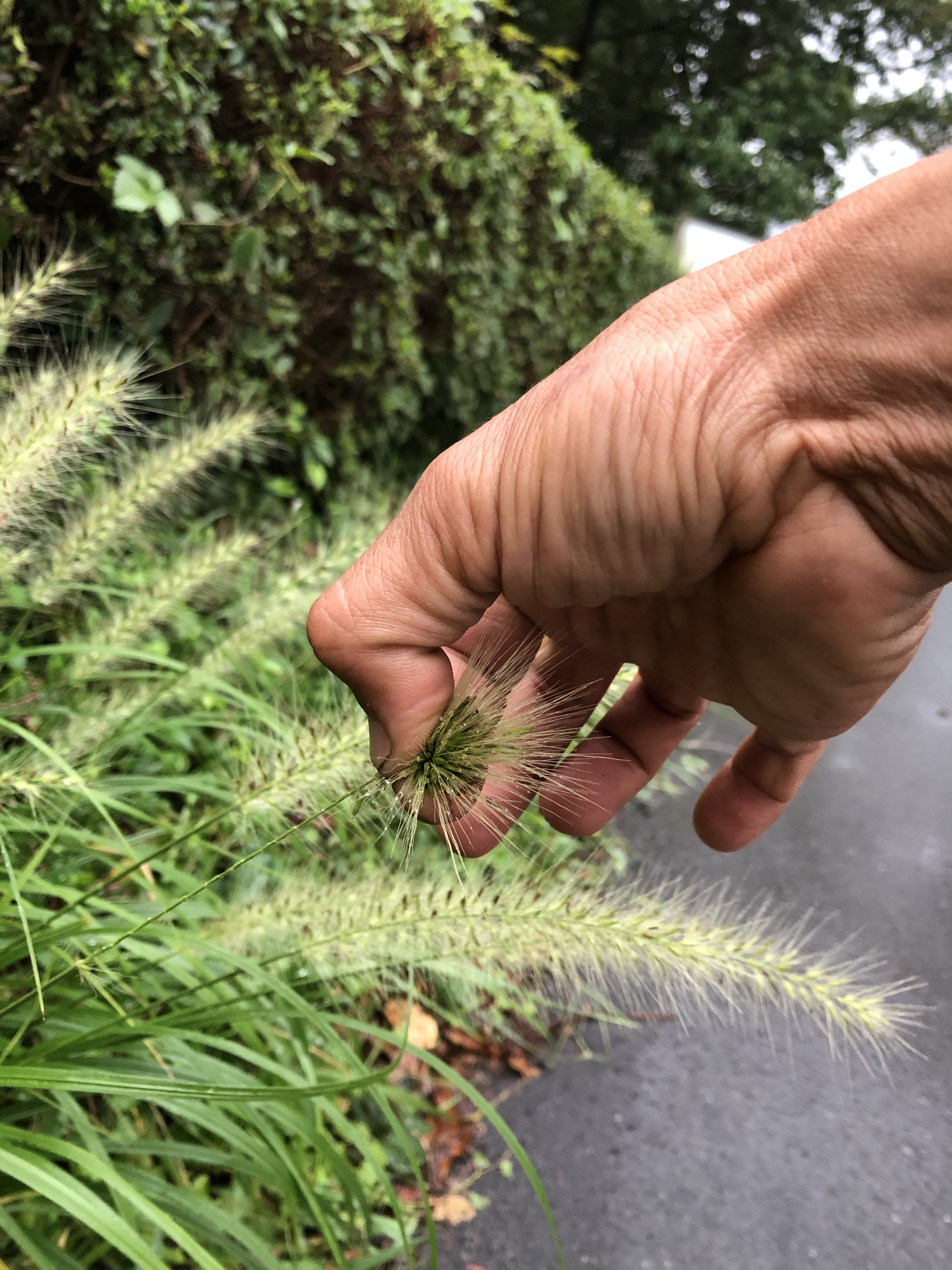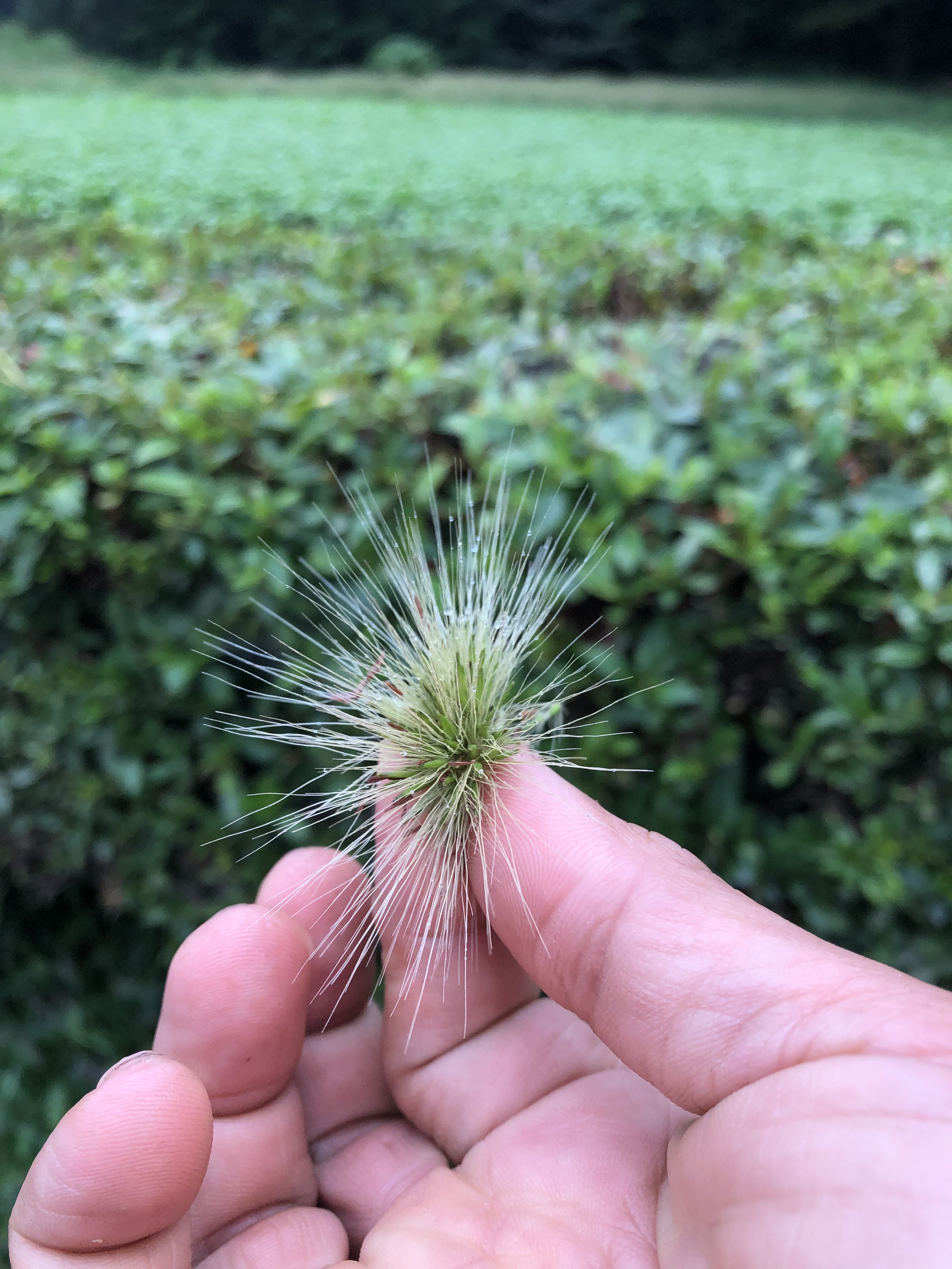 チカラシバの穂の一番下をツメでギーッと強くつまんで、