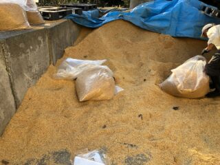 コメ農家さんにもみ殻をもらいに行く。