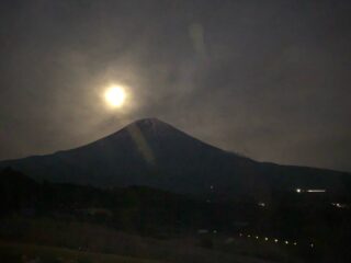 朧月(おぼろづき)と富士山が美しかったので普通に撮ってこれ↑