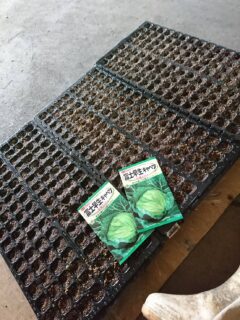 キャベツの苗を作るべく、種をセルトレイに蒔きました。