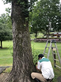 イデお兄さんに萌芽した枝を切って処理してもらう。