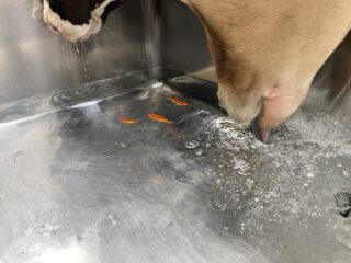 金魚を飼う事で、「金魚からでる分泌物で牛たちにミネラルを供給する」という効果があり