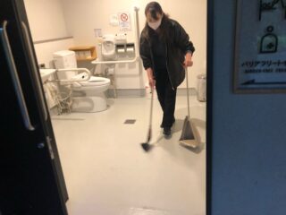 グランテラスのお手洗いは、全スタッフが2班に分かれて毎日夕方にお掃除。(つまり、2日に1回、お掃除担当。みんな。)