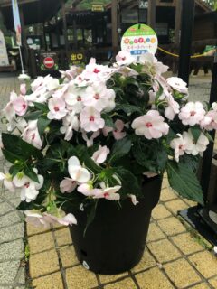 ※業者さんから1鉢プレゼントしてくれたサンパチェンスが昨日届いたので、今年も入口に置いてみました。