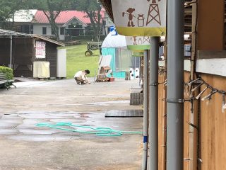 ミツイお兄さんが予定より早く来て、草刈りや草取りを頑張っている姿を遠くから盗撮。