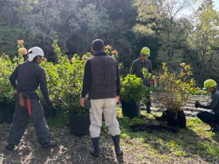 造園屋さんが、先日私達で運んできたアジサイ群を植え付けしてくれるところでした。